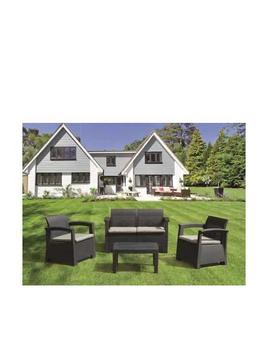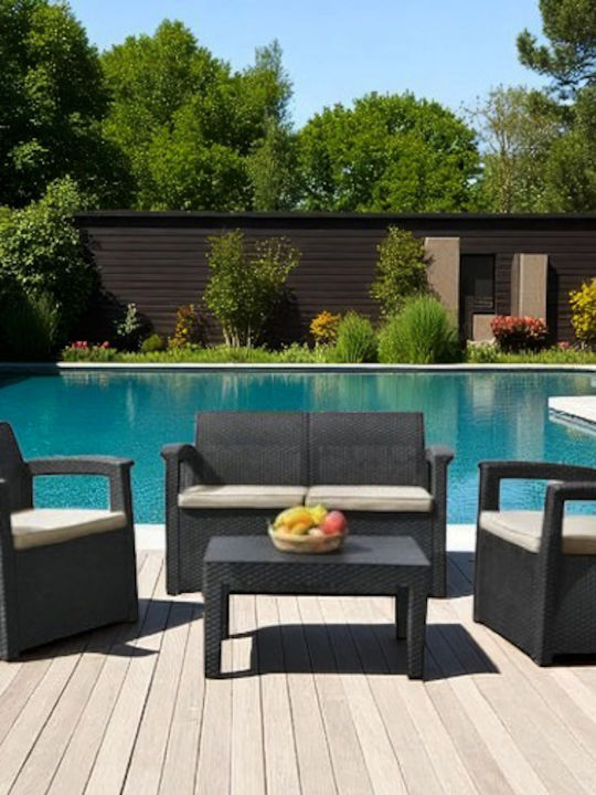 - Περιλαμβάνει 1 διπλό καναπέ κάθισμα, 2 μεγάλες πολυθρόνες, 1 τραπεζάκι και 4 αφαιρούμενα μαξιλάρια (πλενόμενα και αδιάβροχα).