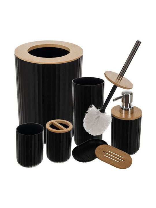 Αυτό το σετ 6 αξεσουάρ μπάνιου είναι κατασκευασμένο από υλικό PP υψηλής ποιότητας με λεπτομέρειες από μπαμπού, συνδυάζοντας λειτουργικότητα και κομψότητα. Το μαύρο χρώμα και η ραβδωτή επιφάνεια των αξεσουάρ προσφέρουν έναν σύγχρονο χαρακτήρα στο εσωτερικό, εξασφαλίζοντας άνεση και υγιεινή κατά τη χρήση.